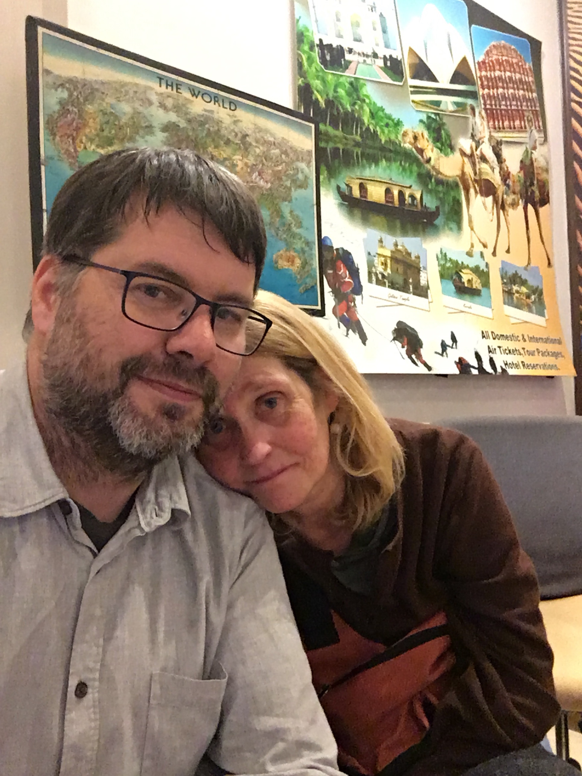 Wir sind im Hotel und warten auf das Zimmer.